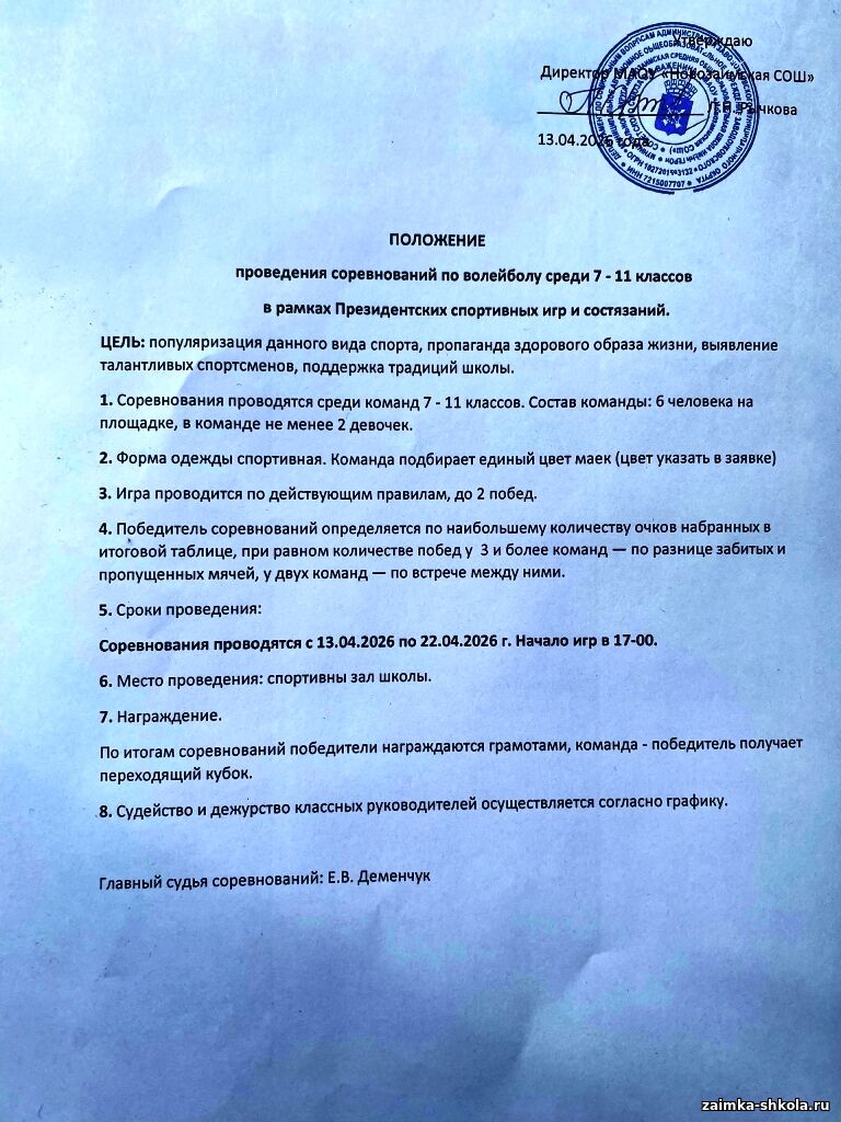 Положение по проведению соревнований по волейболу в рамках Президенских спортивных игр и состязаний