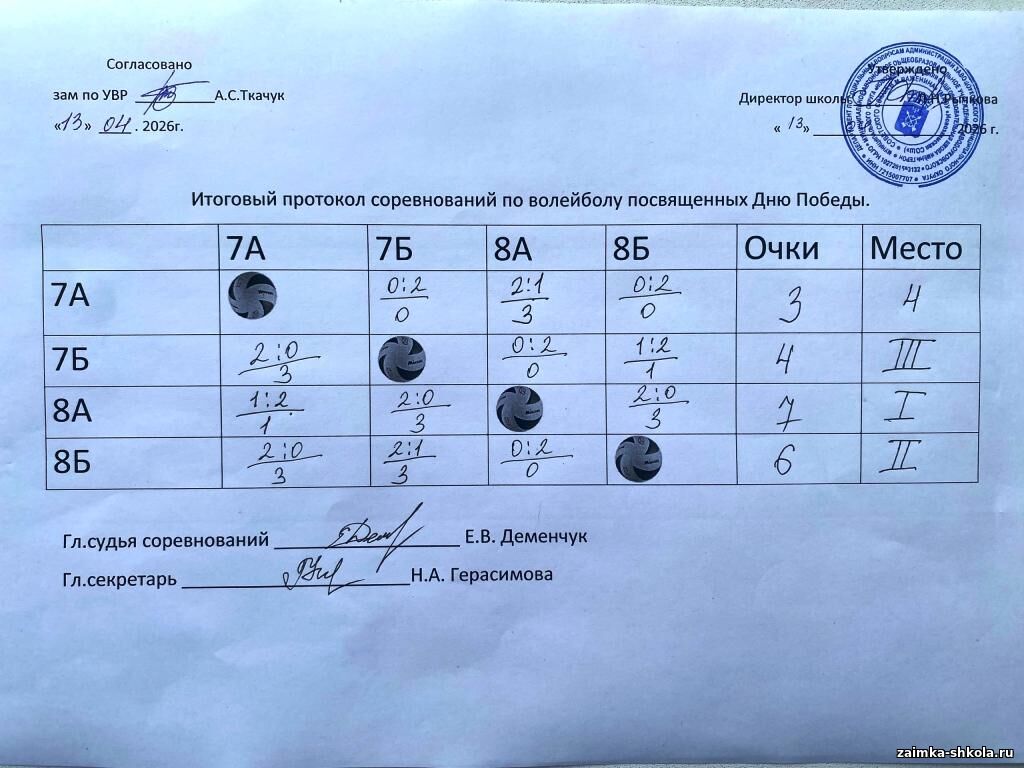 Итоговый протокол по волейболу посвященных Дню Победы, 2026